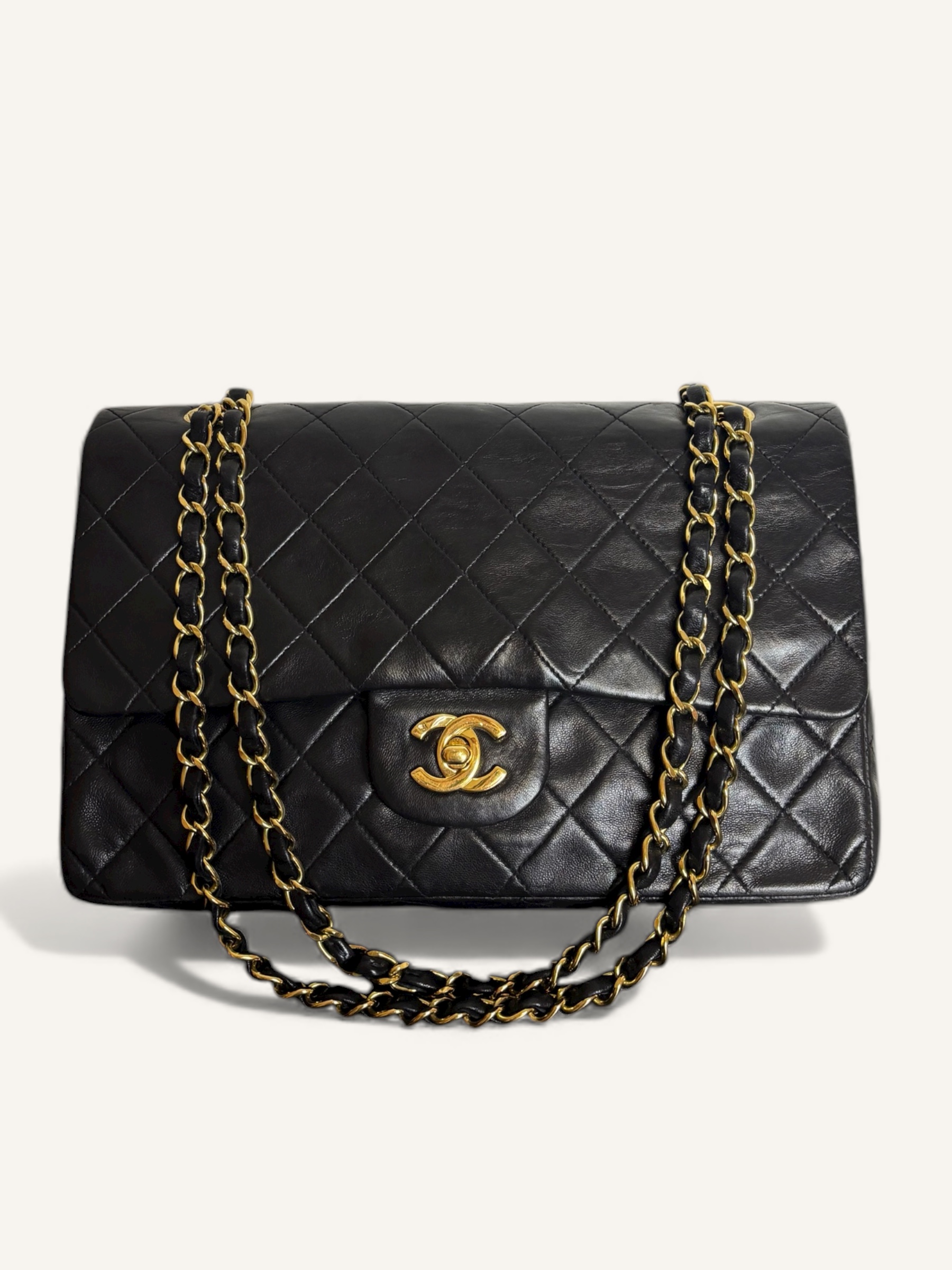 Sac Chanel Timeless Classique Full Flap – Vintage 1993, Cuir Agneau Noir & Or Plaqué
